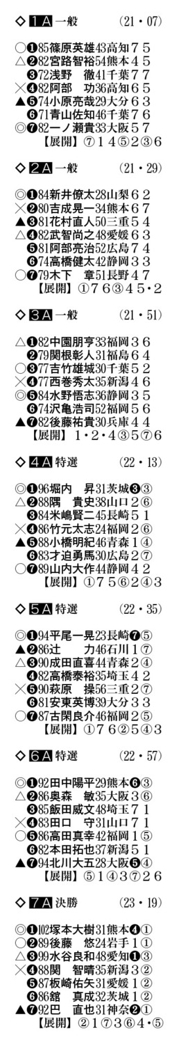 (7)巴 直也 逃げ切り勝ちなので状態はいいと思う。前場所が(強風にさらされる)豊橋だったこともあって、バンクも軽く感じる。自力。
